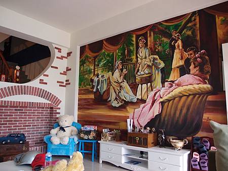 而一進門的壁畫 哇嗚~ 英式下午茶耶 我也想喝貴婦下午茶XD
