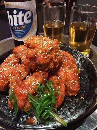 但炸雞好好吃~很和我的胃口~甜甜辣辣的,每塊雞都裹滿了滿滿的醬汁~不
