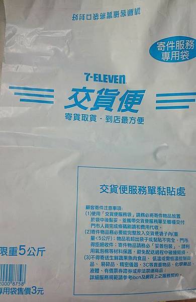 所以在取件的時候 裡面有附一個小七的店到店貨物袋 這個要收好喔 不見要另外購買 1個3元